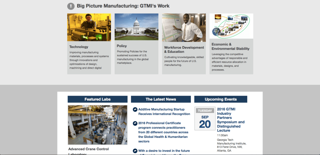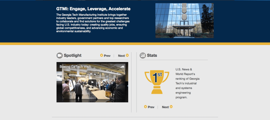 I redevloped the Georgia Tech Manufacturing Institute website to adhere to new brand standards set by the Institute Communications at Georgia Tech.